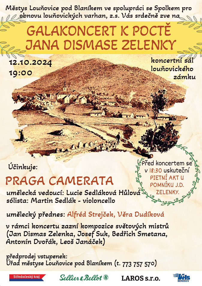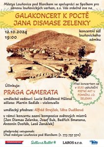 Přijďte se zaposlouchat do kompozic světových mistrů jako je Jan Dismas Zelenka, Josef Suk, Bedřich Smetana, Antonín Dvořák, Leoš Janáček v podání komorního orchestru PRAGA CAMERATA. Galakoncert k poctě Jana Dismase Zelenky  se uskuteční již dnes 12. října od 19:00 hodin. Pietní akt od 18:30 hodin u pomníku J.D. Zelenky.