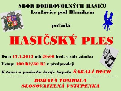 Přijměte pozvání na hasičský ples, který se koná v sobotu 17. ledna 2015 od 20:30hod. v sále místního zámku.