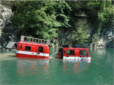 Hasiči představili obojživelné auto.