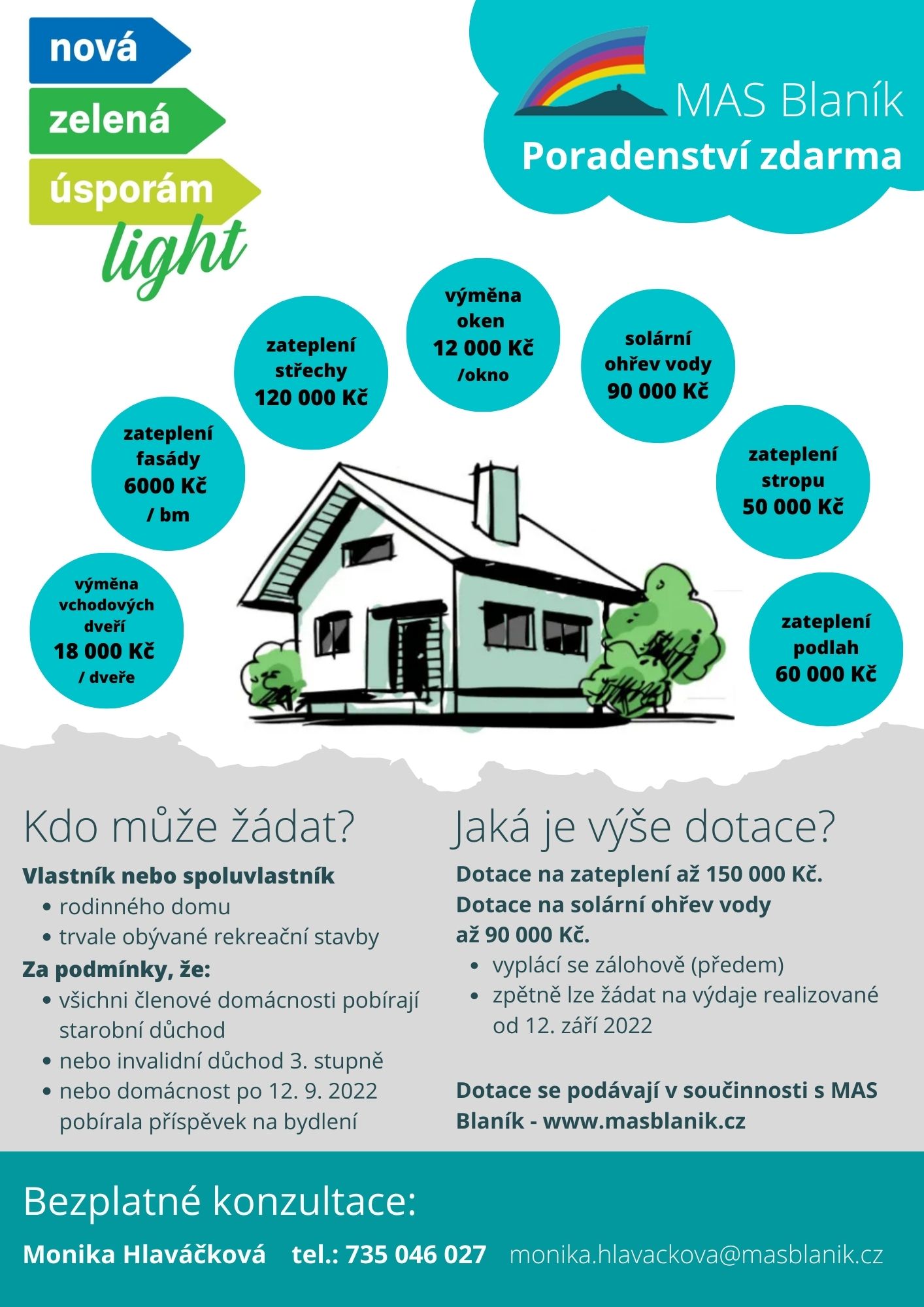 Informace o možnosti získat dotaci z Nové zelené úsporám Light pro důchodce a nízkopříjmové domácnosti.