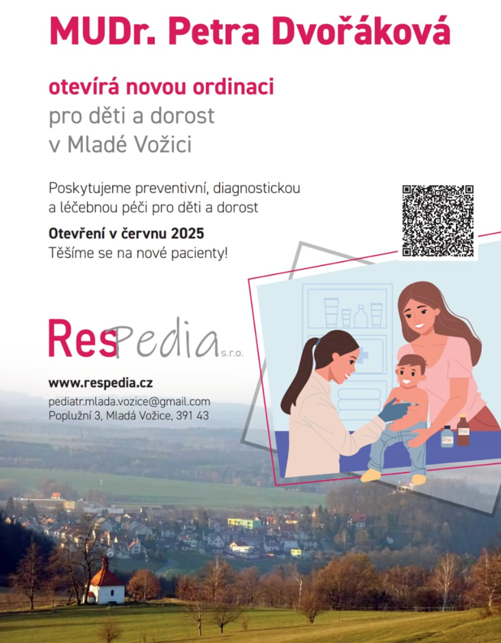 MUDr. Petra Dvořáková otevírá novou ordinaci pro děti a dorost v Mladé Vožici.