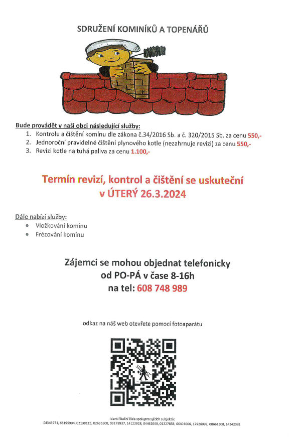 Nabídka revizí, kontrol a čištění komínů