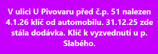 Z důvodu opravy na vodovodním řadu je uzavřen přívod vody v ulici Za Dvorem ( č.p. 2, 3, 132, 133, 174, 249, 247, 250, 252,).