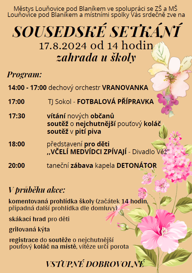 Přijměte srdečné pozvání na letošní sousedské setkání 17.8.2024
