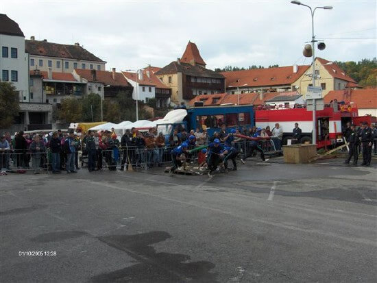 Naše poslední soutěž v letošním roce, byla zároveň první soutěží ve velké konkurenci. Byl to již XXIII ročník v požárním útoku, na tuto soutěž přijíždí celá „hasičská smetánka“, která ukazuje, co vše umí. My, jako chtivý sportu a chutě jsme přijeli do Krumlova, abychom okoukli ostatní družstva a taky ukázali co umíme. Celkem přijelo na soutěž 112 družstev. Po perfektně rozjetém útoku se nám rozpojila hadice na rozdělovači a časem 56,6s. jsme skončili na 85. místě. Do příštího roku hodně štěstí a doufejme, že i na této soutěži se nám bude dařit.