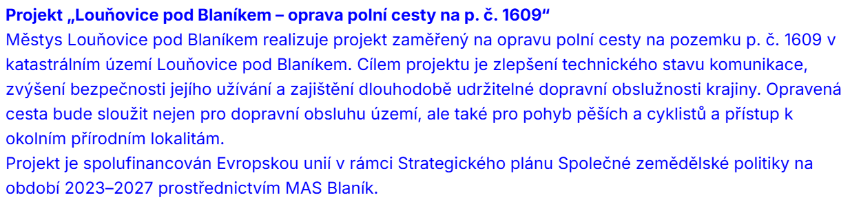 Projekt „Louňovice pod Blaníkem – oprava polní cesty na p. č. 1609“