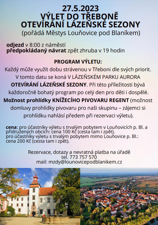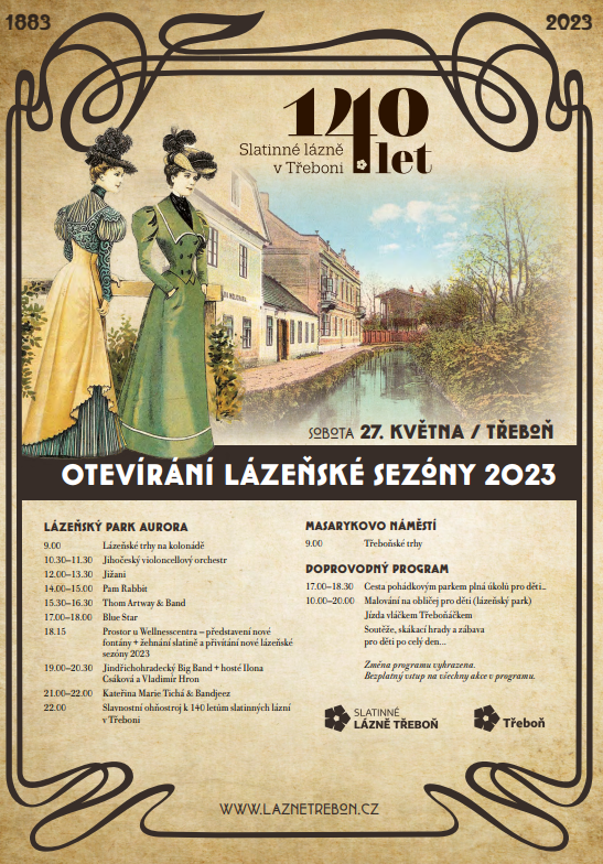 V souvislosti s VÝLETEM DO TŘEBONĚ přikládáme k nahlédnutí plakát na akci ,,Otevírání lázeňské sezony 2023".