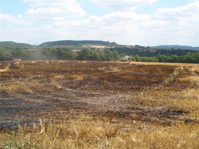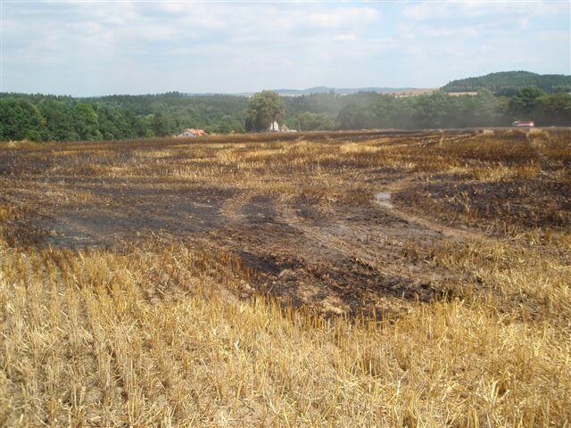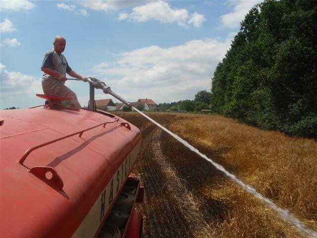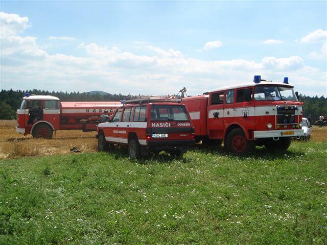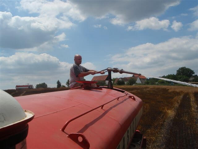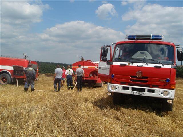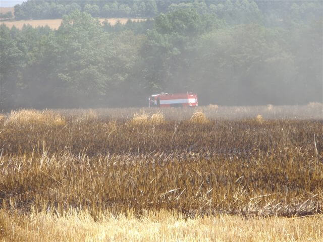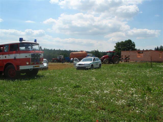 Není to tak dávno co jsem zde psal o zásahu jednotky SDH Louňovice při požáru slámového stohu u obce Daměnice a další výjezd jednotky nenechal na sebe dlouho čekat. V tomto případě se jednalo taktéž o výjezd k ohni,kdy bylo jednotkou přijato oznámení o vzniku požáru obilného pole těsně sousedícího s obcí Hradiště o celkové výměře cca 12 ha. Konkrétně se jednalo o středu 16.7.2008 v čase 12:40 hod. Jednotka vyjela na místo určení již pár minut po přijetí oynámení v sestavě Kirchner Petr a Staněk Martin s vozidlem RT CAS 16. Na zasahujícím místě se jednotka spojila s velitelem zásahu HZS Vlašim. Na pokyn velitele zásahu byloprovedeno přečerpání části vody z cisterny do cisterny profesionálních hasičů z Vlašimi a dobrovolných hasičů z Domašína. Zbývající část vody byla použita pomocí vodního děla k obstřiku okrajů pole k zamezení opětovného vzniku požáru. Požár se podařilo za pomoci všech zúčastněných jednotek lokalizovat a po cca. 1. hodině jednotka SDH Louňovice se svolením velitele zásahu místo opustila.